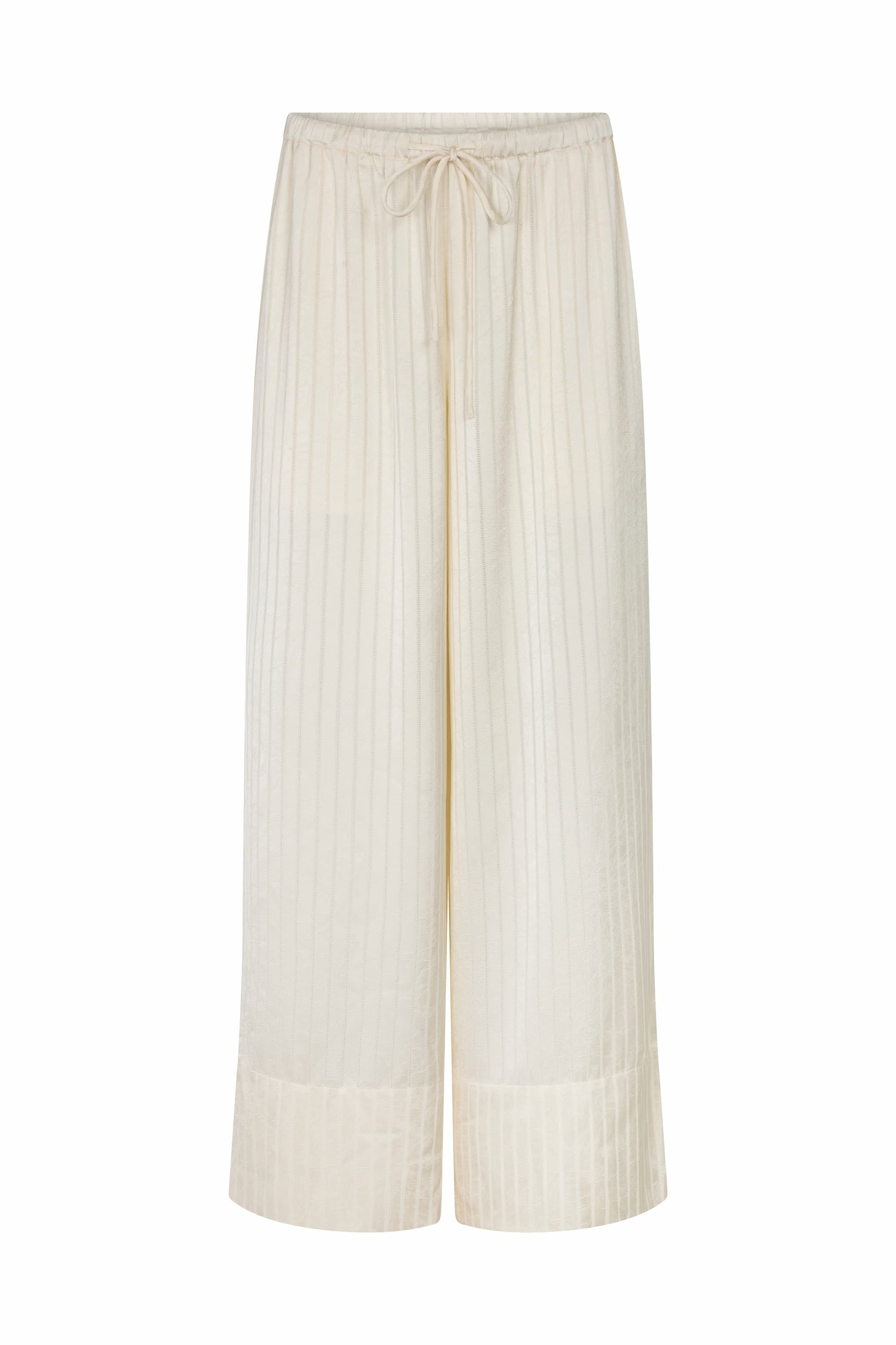 Stripe fabrication Relaxed fit Pull on style Elasticated waistband and drawstring Side pockets Wear both high or low waisted