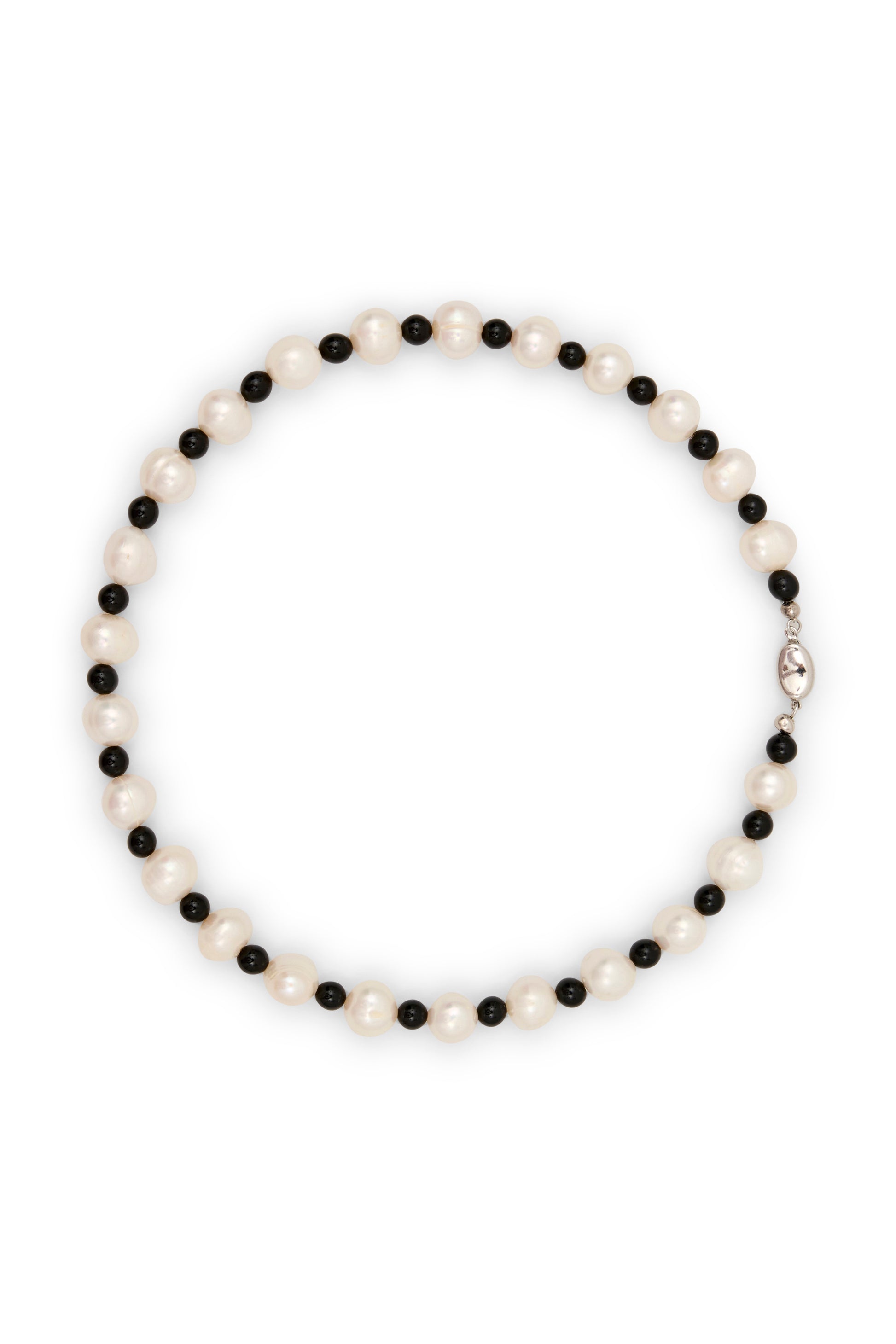 Hand-crafted Freshwater pearls Black onyx stone beads Sterling silver bean clasp