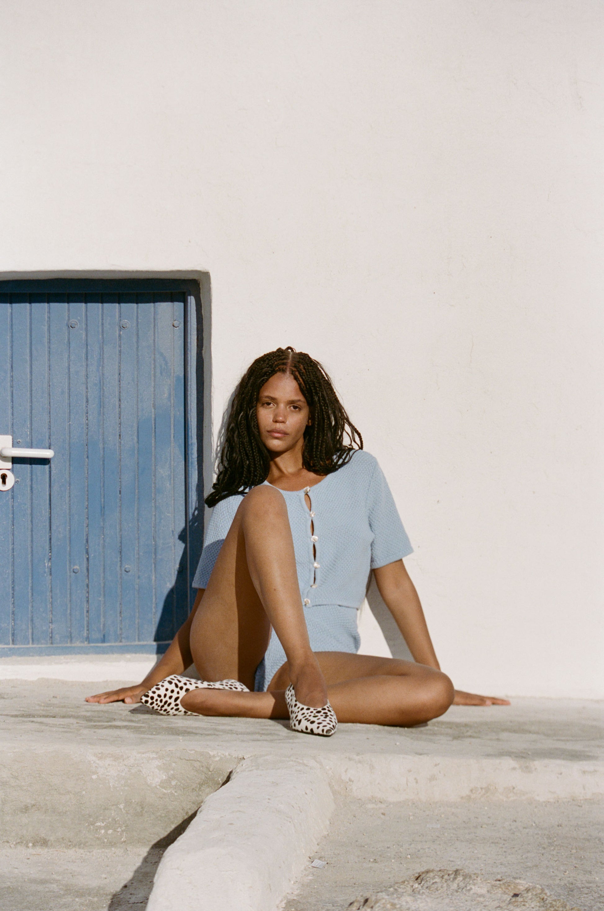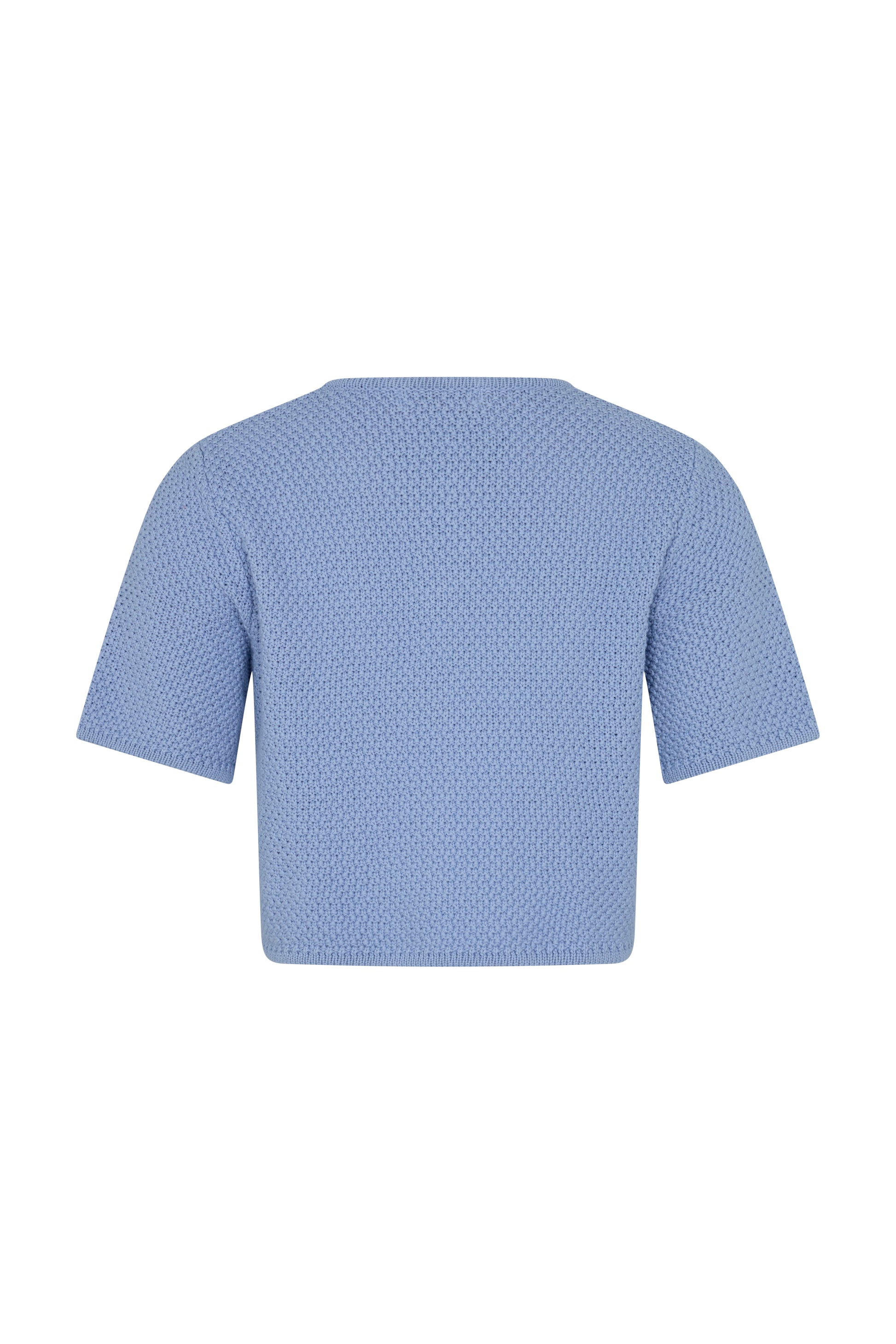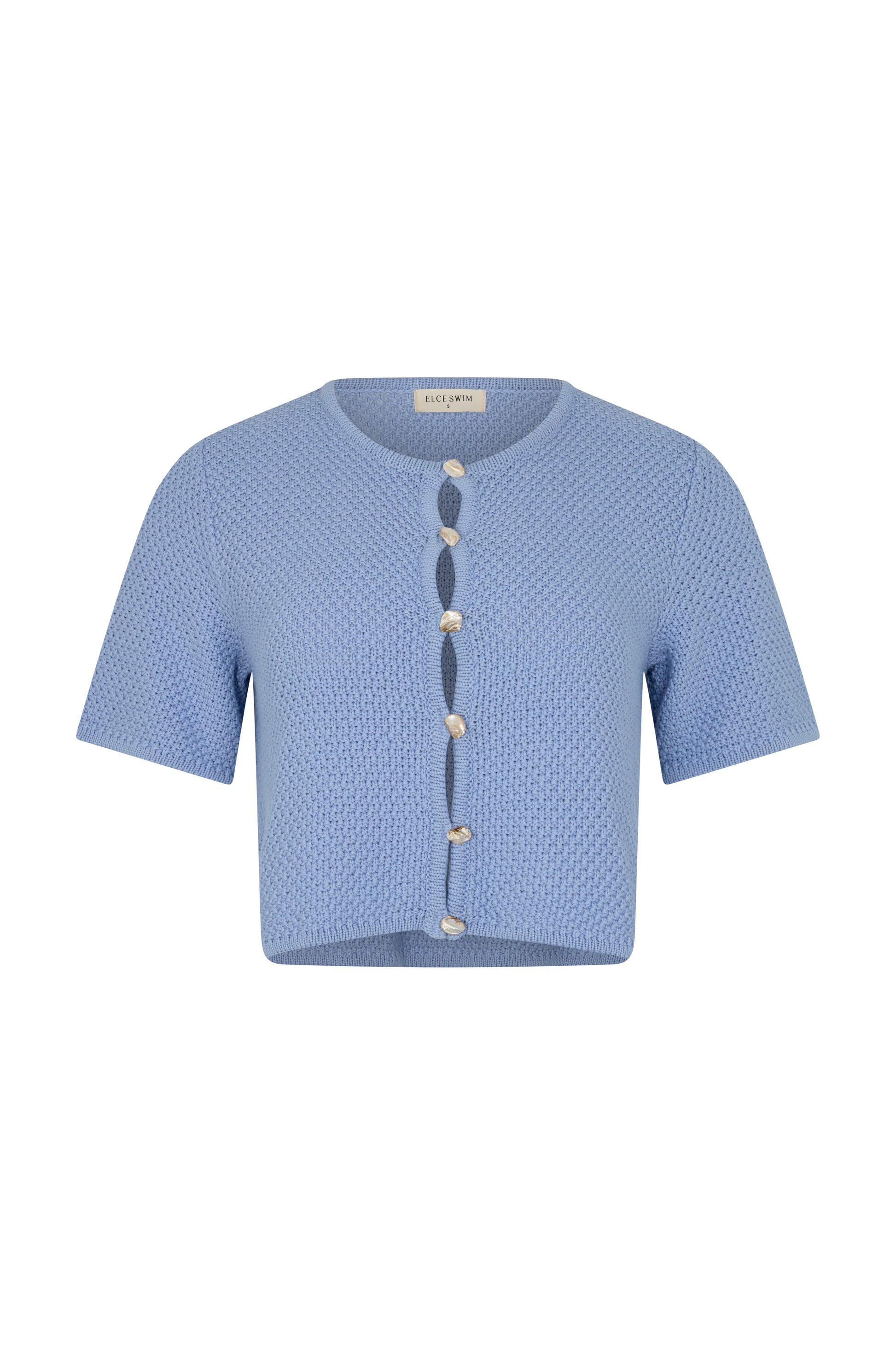 The Florent Top is crafted from a soft cable knit for a textured, elevated feel. Designed with a cropped, boxy silhouette, it offers an easy balance of structure and comfort. Short sleeves and delicate shell button detailing add a refined touch, making it an effortless piece, perfectly paired with the Florent Short.