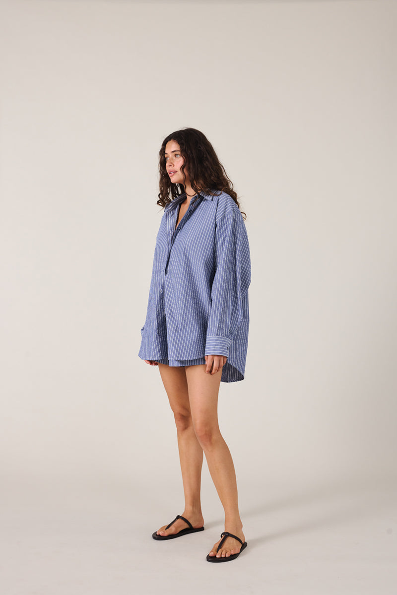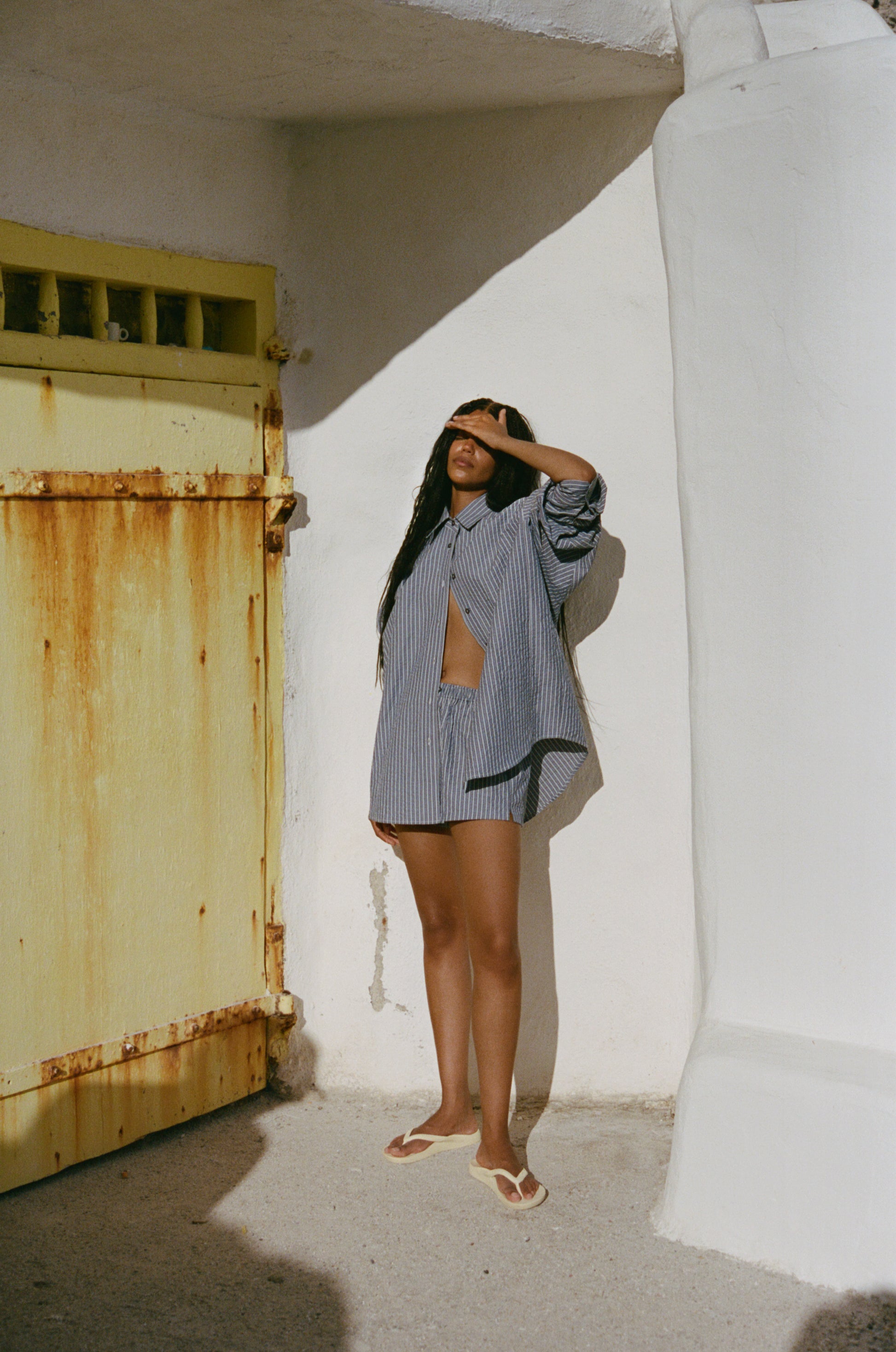 A classic redefined, the Ime Shirt is crafted from soft cotton poplin. Designed with a collared neckline, cuffed sleeves, and button front closure, it features subtle tailoring for a clean, structured finish. Lightweight and breathable, pair with the Ime Boxer Short to make it an effortless set.