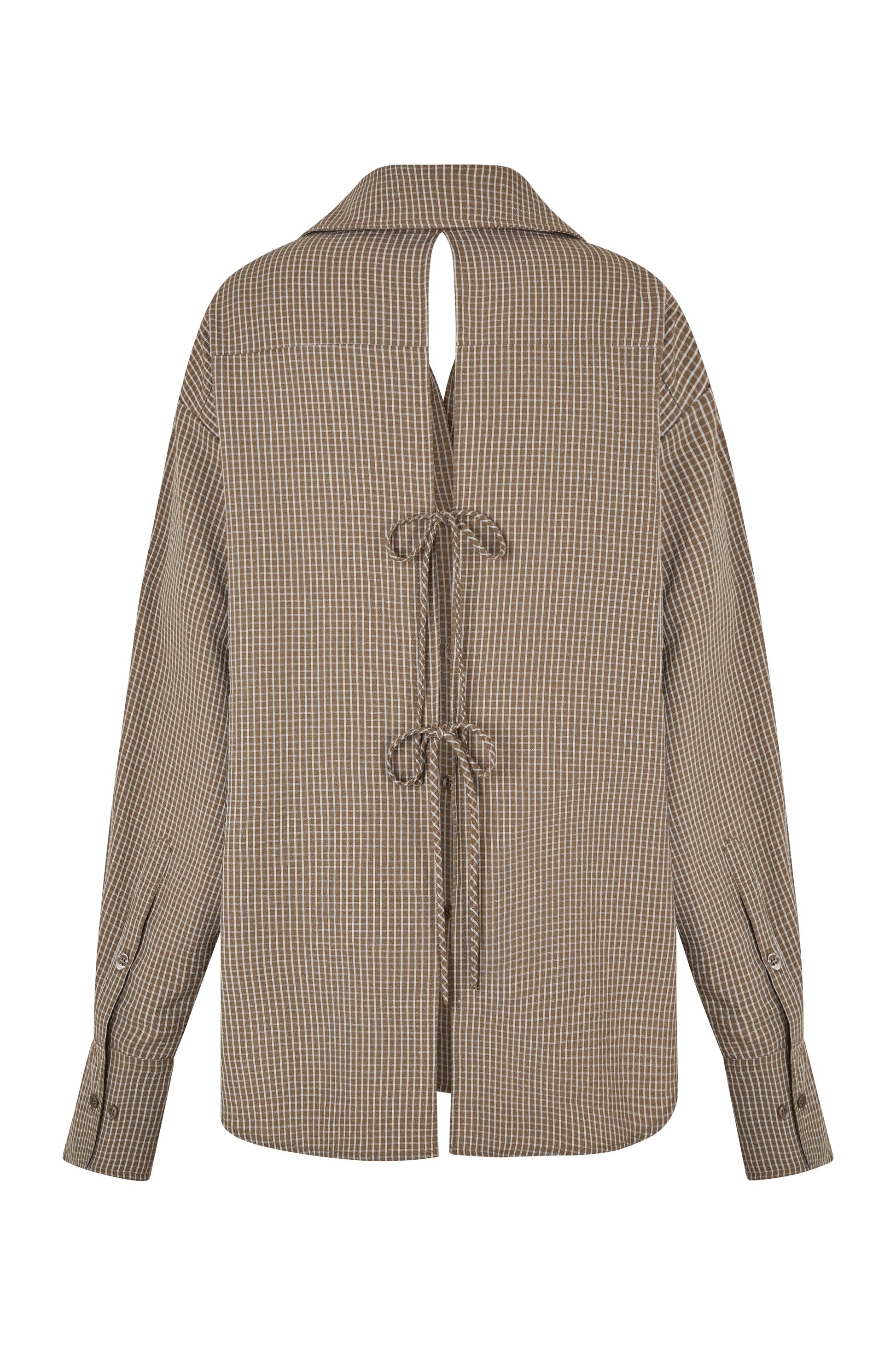 The Josephina Shirt is a modern twist on a classic silhouette, crafted in mini-check fabric for a touch of timeless charm. With a relaxed fit and collared design, it features an open-back detail with double ties. Perfect for elevating your everyday wardrobe, the Josephina Shirt blends style and comfort seamlessly, pair with the Josefina Short.