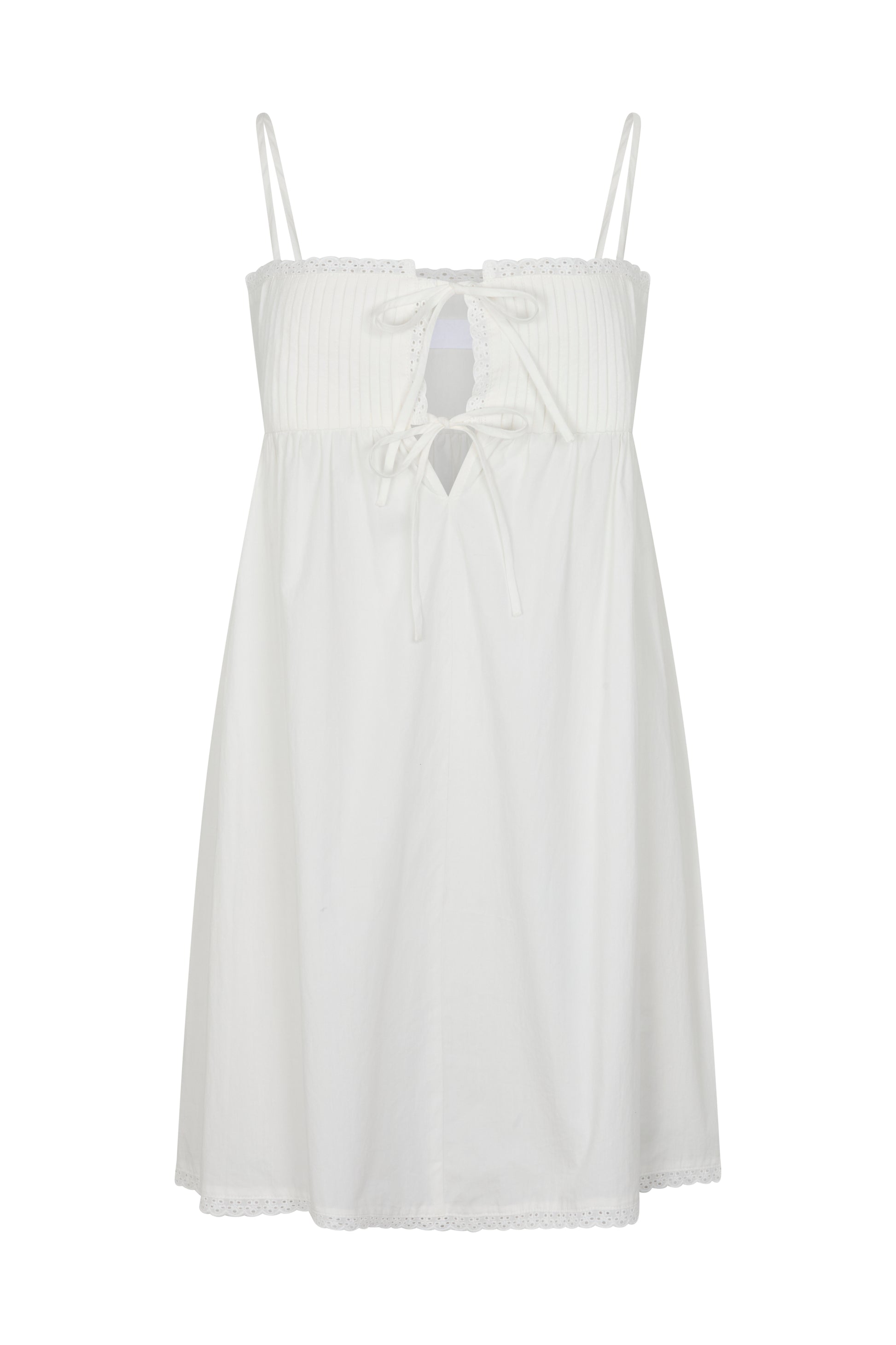 The Lilya Dress is crafted from lightweight cotton poplin with delicate lace at the bust and hem. Adjustable straps and a dual tie front make it easy to slip on for easy dressing. A carefree silhouette you’ll reach for again and again.