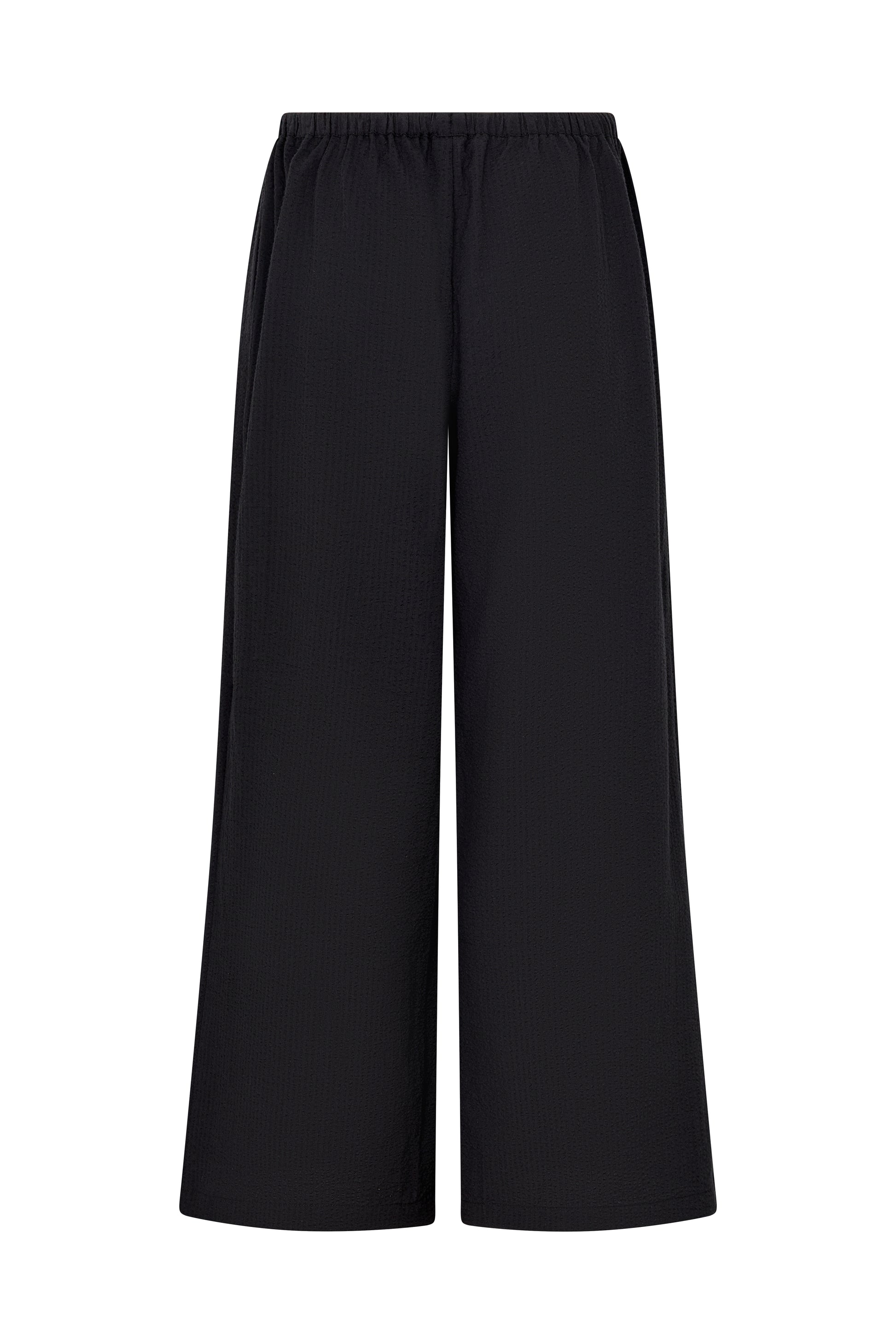 Crinkle stripe fabrication Drawstring Elasticated waistband Side entry pockets Wide fit Regular hem