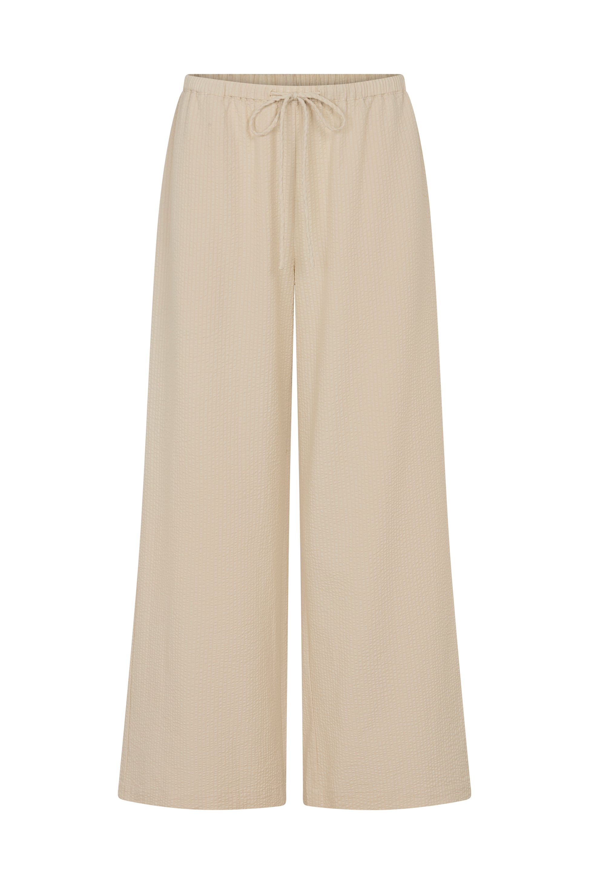 Relaxed and refined, the Lola Pant is crafted from our signature crinkle stripe fabrication for a lightweight, effortless feel. Designed with a wide-leg silhouette, the elasticated drawstring waistband and side seam pockets offer everyday ease and comfort. It's a versatile piece to wear poolside or pair back with the Lola Top for a soft, coordinated look.