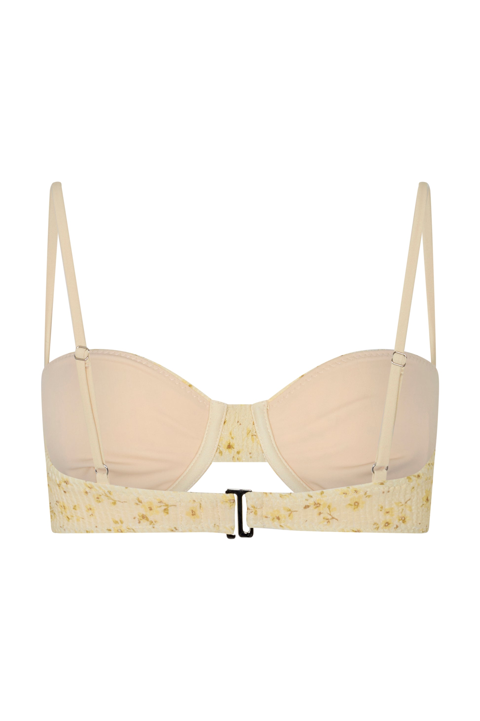 Delicate floral print Soft and stretchy fabric Bra Cup Design Gathered bracup detail Thin adjustable straps Adjustable back clasp