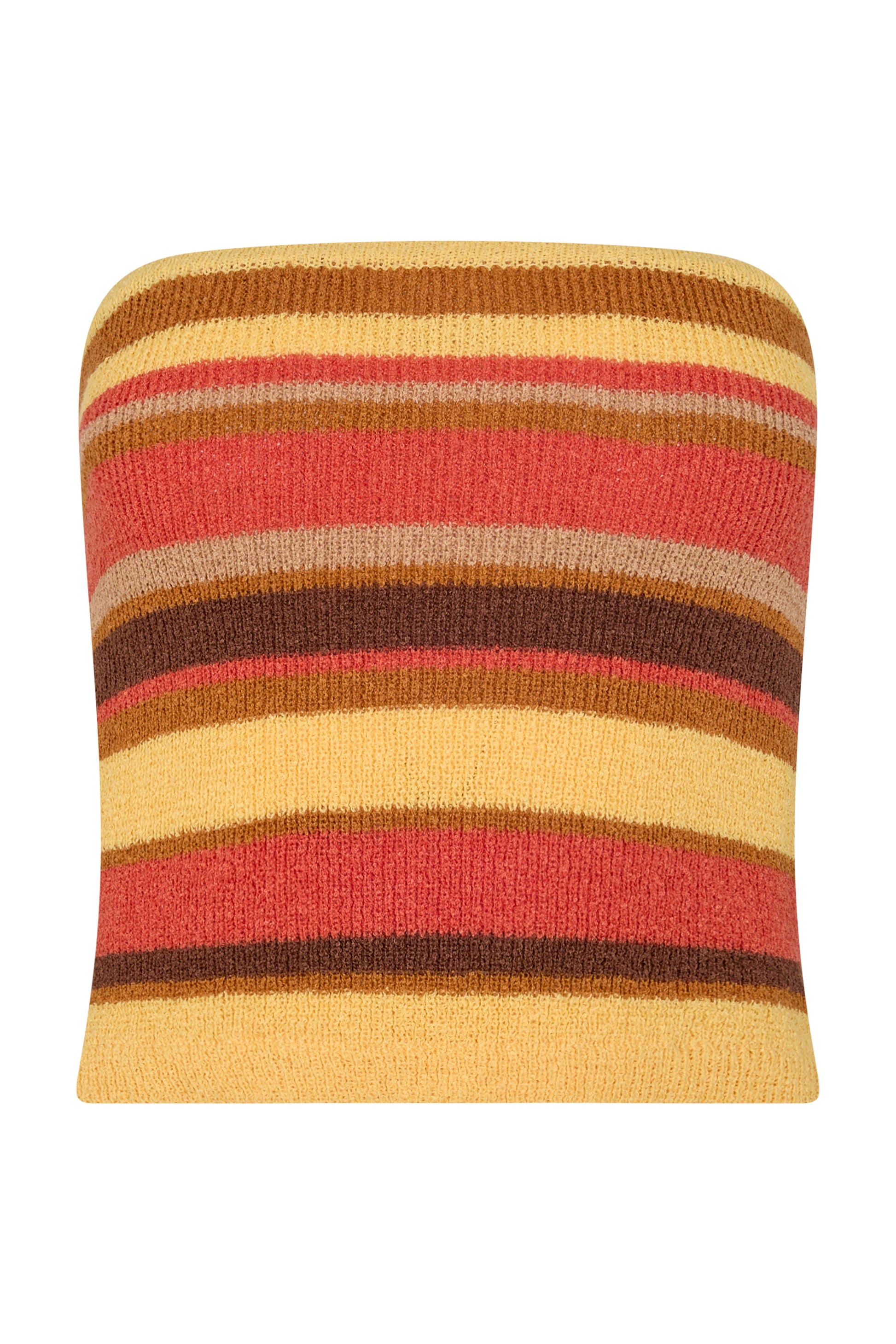 The Reine Strapless Top in Guava is a fitted, body-hugging style crafted from soft knit fabric. Designed with a clean, strapless neckline and finished with contrast rib detailing for a distinctive touch. Pair it with the Reine Short in Guava for a coordinated look.