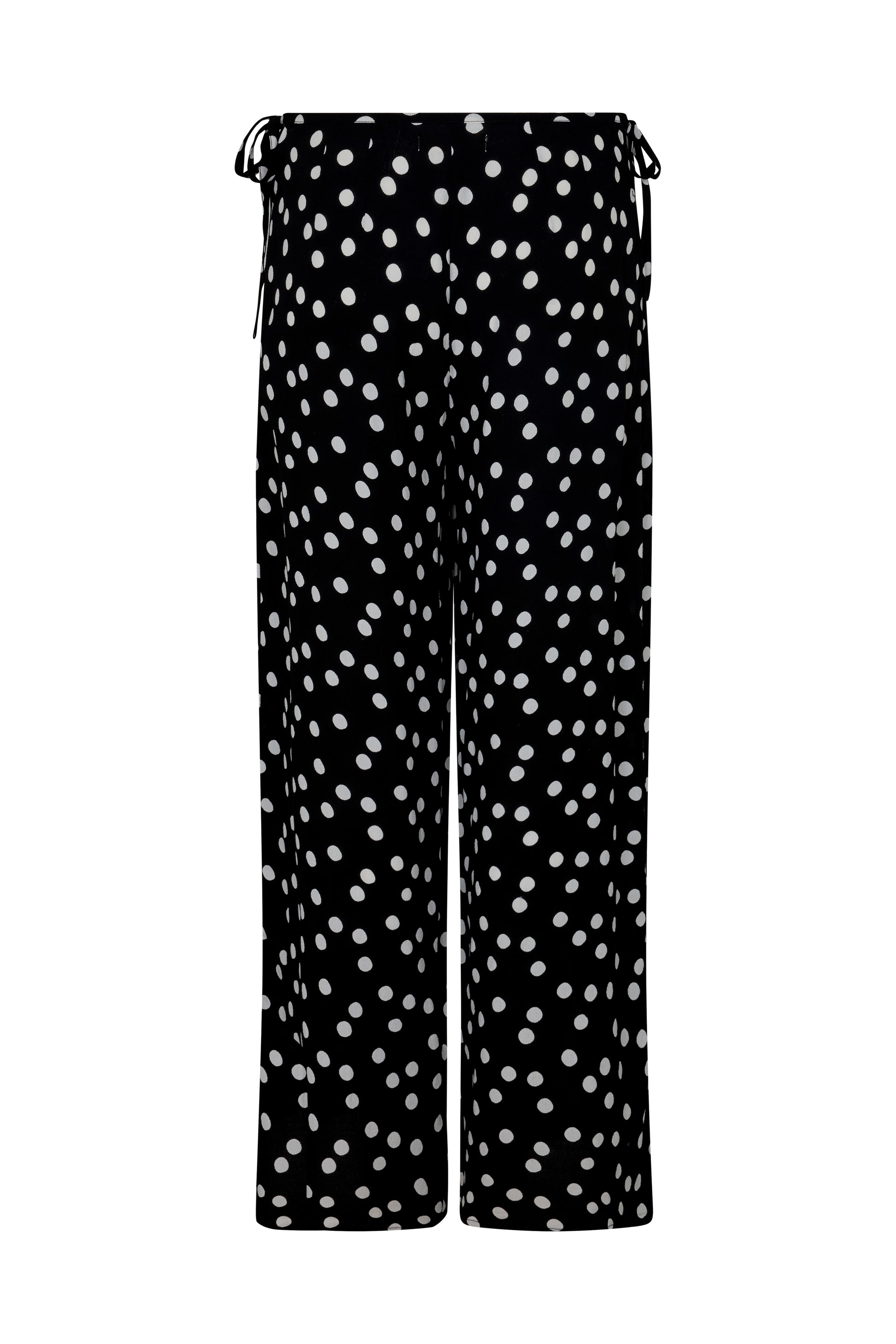 The Serene Pant is a relaxed, lightweight essential in a classic black and white polka dot print. Designed with a low-rise waist and side tie detailing, it offers a comfortable, easy fit that moves with you. Breathable and versatile, it pairs perfectly with the Serene Top for a coordinated set or can be styled with a simple tank for effortless everyday style.